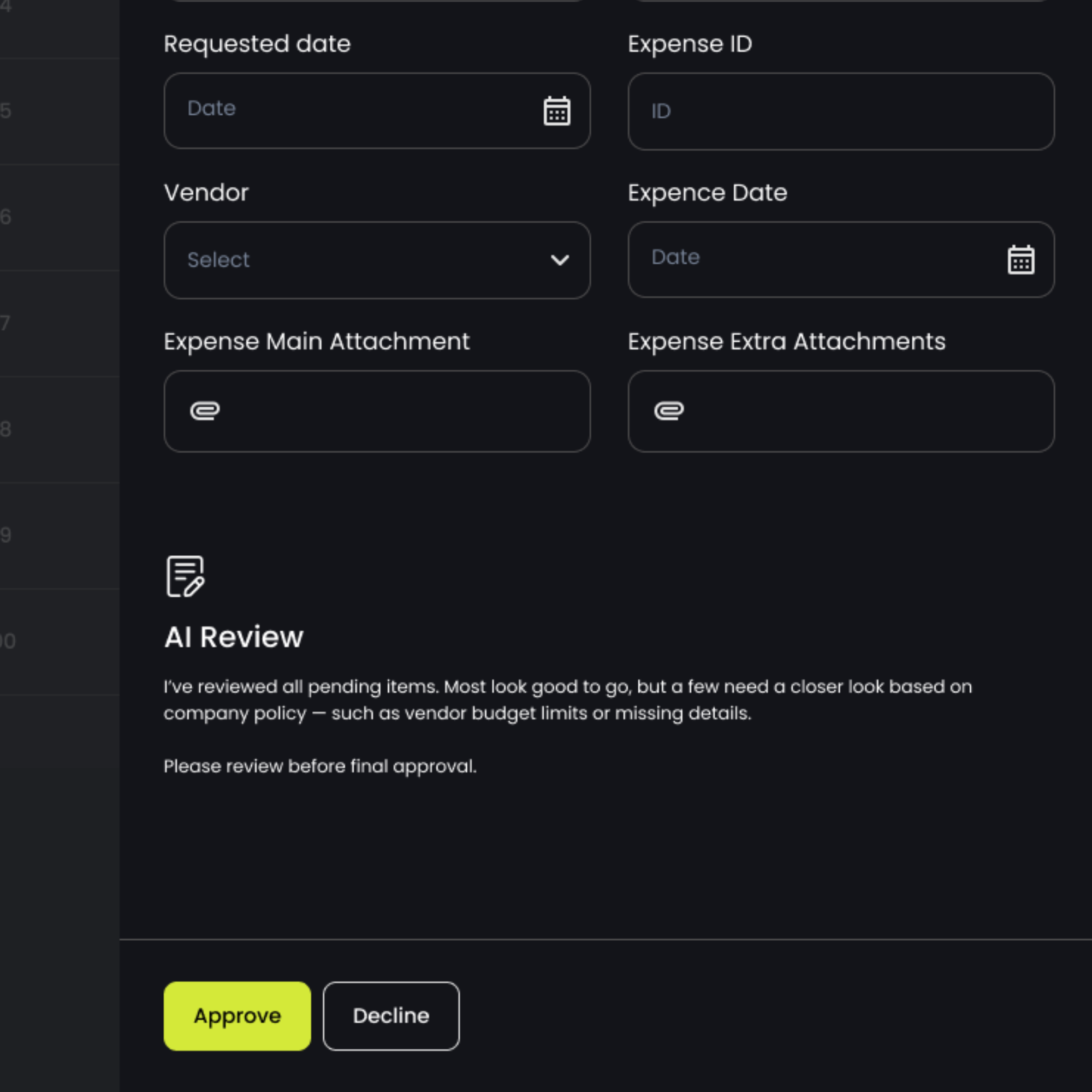 AI that streamlines spend requests, approvals, and management—always aligned with company policies.